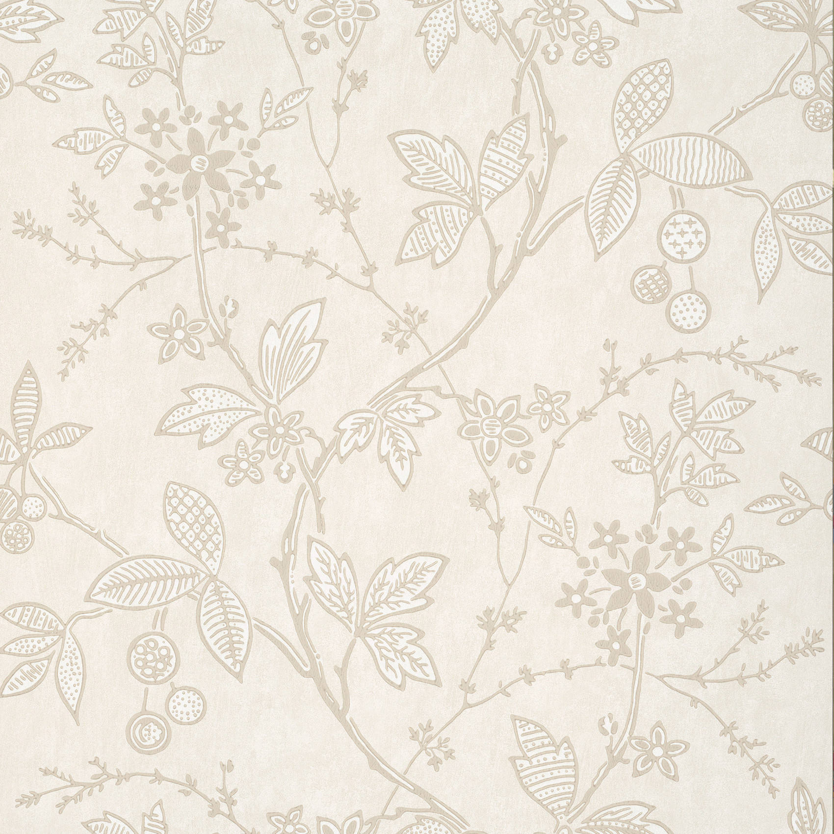 Wrest Trail behang van Little Greene. Dit ontwerp, afgeleid van een interessant stuk in het archief, is vooral opmerkelijk vanwege de tekenstijl die werd gebruikt om het all-over trail-effect te creëren. Een gestructureerde, dwalende stengel wordt gesierd door vrij ontspannen, bijna schetsachtige interpretaties van bladeren en fruit. In één oogopslag is het meer in stijl van het midden van de 20e eeuw dan zijn werkelijke oorsprong van honderd jaar eerder. Verkrijgbaar in vijf kleurstellingen.Â