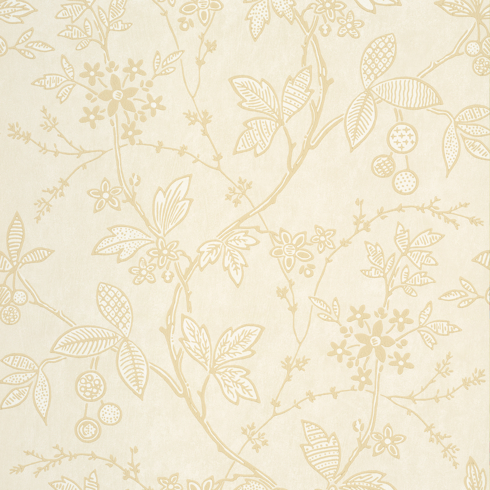 Wrest Trail behang van Little Greene. Dit ontwerp, afgeleid van een interessant stuk in het archief, is vooral opmerkelijk vanwege de tekenstijl die werd gebruikt om het all-over trail-effect te creëren. Een gestructureerde, dwalende stengel wordt gesierd door vrij ontspannen, bijna schetsachtige interpretaties van bladeren en fruit. In één oogopslag is het meer in stijl van het midden van de 20e eeuw dan zijn werkelijke oorsprong van honderd jaar eerder. Verkrijgbaar in vijf kleurstellingen.Â