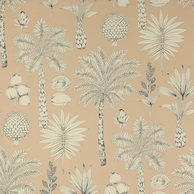 Cote d'Azur behang heeft de weelderige tropische palmen die in Zuid-Frankrijk te vinden zijn, het heeft een rustig maar luxueus effect.
