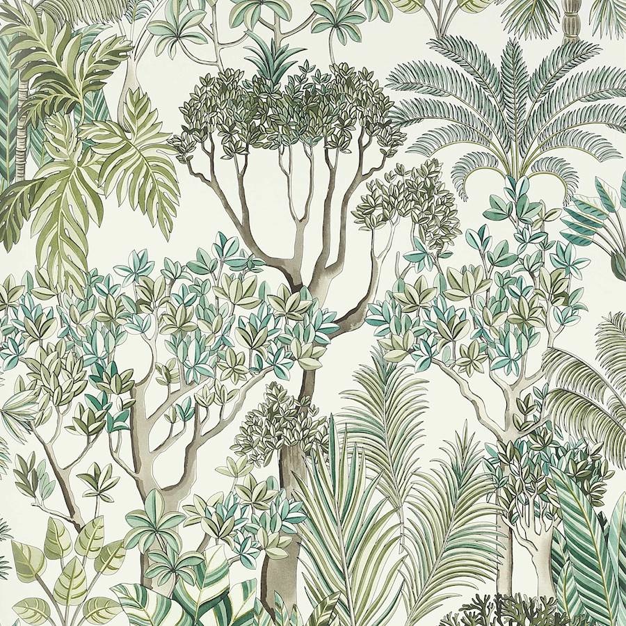 Morny behang creëert een vergezicht van een zwoele tuin die is geïnspireerd op een weelderige plantengroei in een warm klimaat.