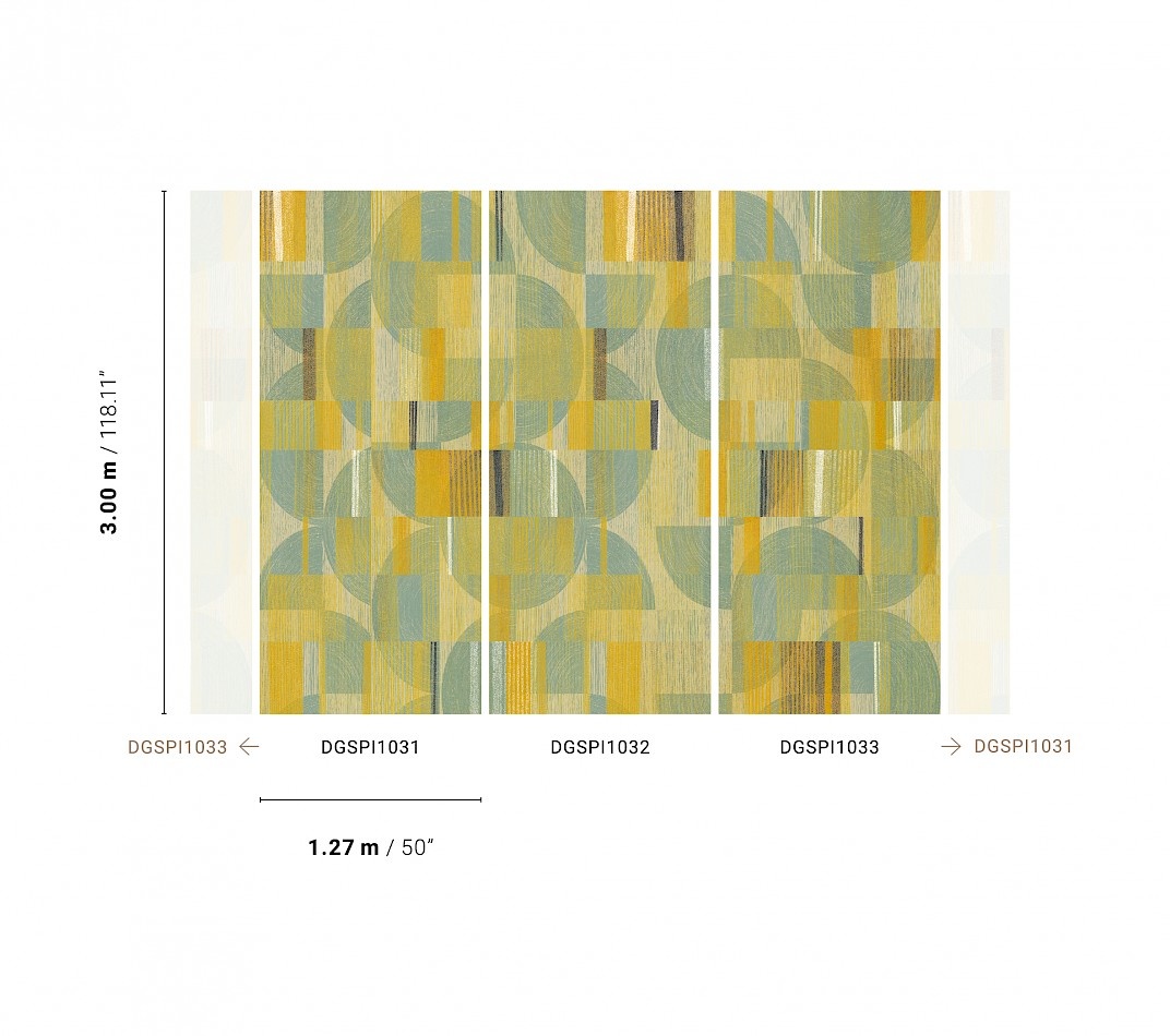 Let op: Deze mural bestaat uit 3 panelen. Deze panelen zijn ieder 3 meter hoog en 127 centimeter breed. Samengevoegd is de mural 3 meter hoog en 3,81 meter breed. Je maakt deze mural compleet door de 3 panelen met artikelcodes DGSPI1031, DGSPI1032 en DGSPI1033 te bestellen (zie afbeelding).