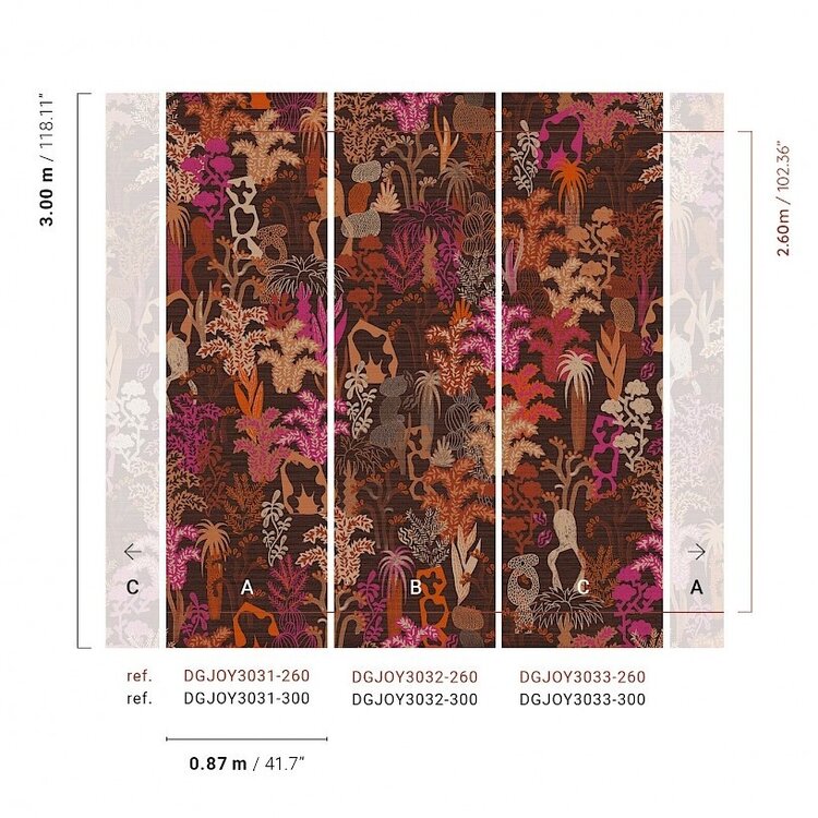 Je maakt deze mural compleet door de 3 panelen met artikelcodes DGJOY3011, DGJOY3012 en DGJOY3013 te bestellen (zie afbeelding).