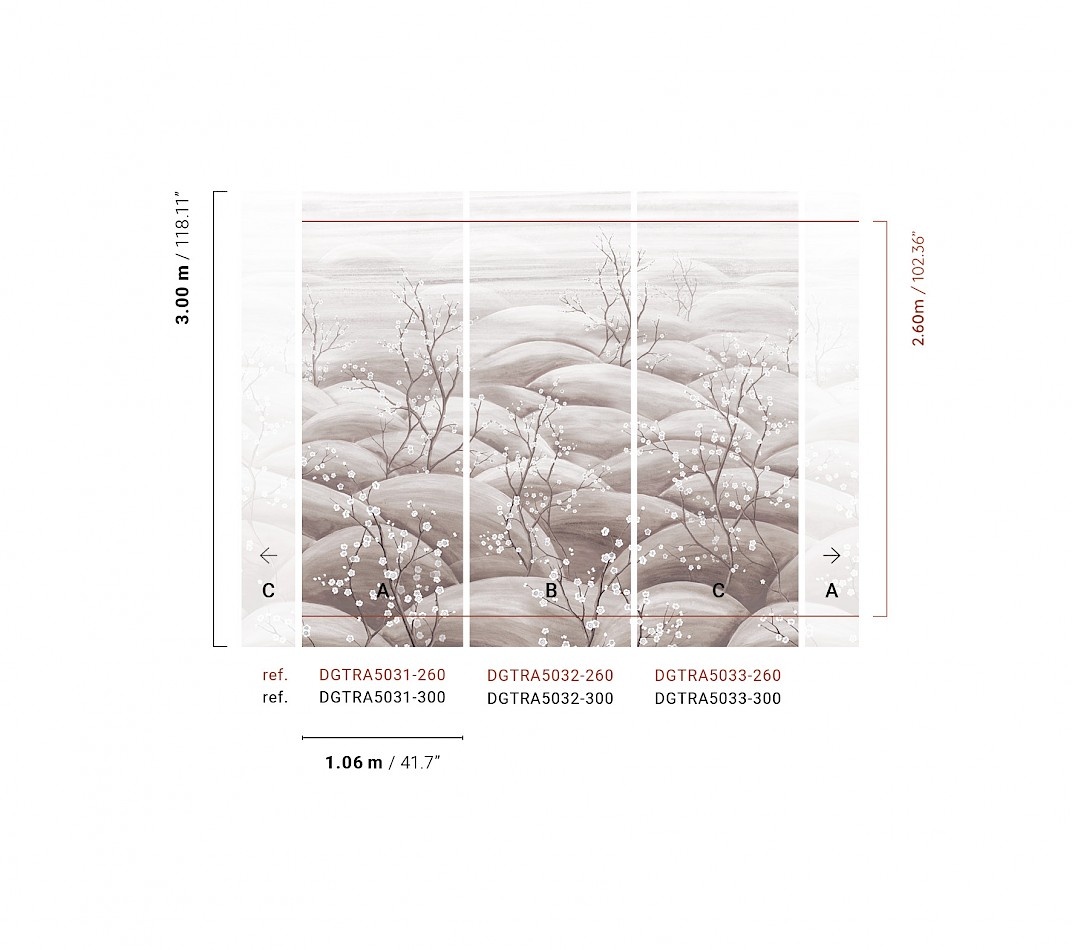 Let op: Deze mural bestaat uit 3 panelen. Deze panelen zijn ieder 2,6 meter hoog en 106 centimeter breed. Samengevoegd is de mural 2,6 meter hoog en 3,81 meter breed. Je maakt deze mural compleet door de 3 panelen met artikelcodes DGTRA5031, DGTRA5032 en DGTRA5033 te bestellen (zie afbeelding). Dit paneel is ook leverbaar in de lengte van 3 meter en kost € 221.