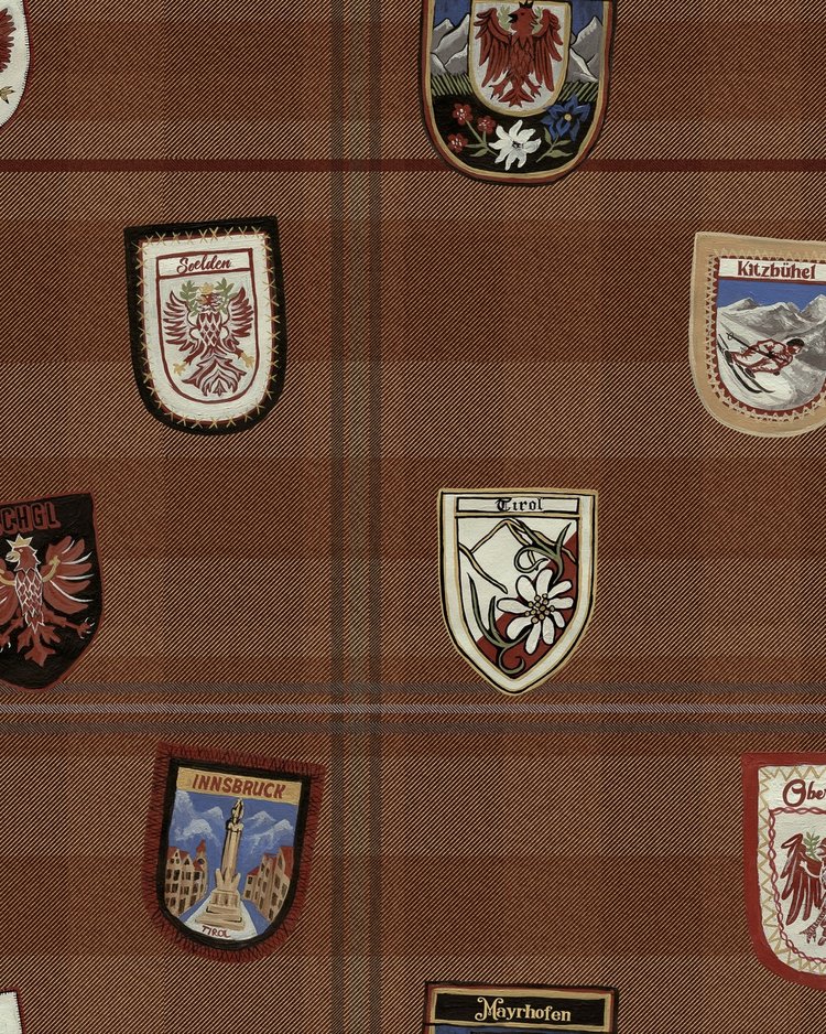 Alpbach is een behang dat geïnspireerd is op het gelijknamige wintersportoord Alpbach. Deze muurbekleding van Mind the Gap uit de Tyrol Apres-Ski collectie toont een patroon van Tiroolse wapenschilden, die als geborduurde patches op een traditionele geruite plaid zijn gestikt. Een vintage behang dat perfect is voor een tijdloos, sfeervol en warm interieur.