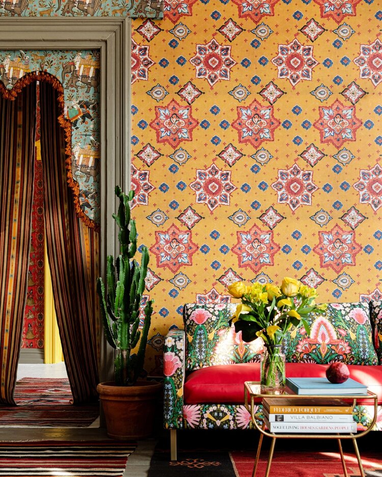 Arabian Decorative is een behang dat is geïnspireerd op het landschap, de mode en de decoratieve architectonische kenmerken van Noord-Afrika. Deze muurbekleding van Mind the Gap, uit de collectie Tales of Maghreb, brengt elke ruimte tot leven met deze prachtige uitbarsting van kleuren, patronen en ornamenten. Een kleurrijk behang dat perfect is voor een dramatisch effect in jouw interieur.