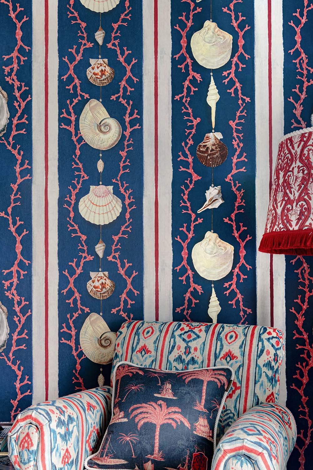 Coquillage paneelbehang is een galerie-achtig behang ontworpen met versteende zeeschelpen. oude kalksteen en verschillende zee rotsen die tikken naar oude pracht van Griekenland.