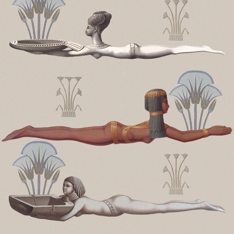Een decoratief ontwerp op een lichtblauwe achtergrond, geïnspireerd door de rijkdom van de Egyptische cultuur.