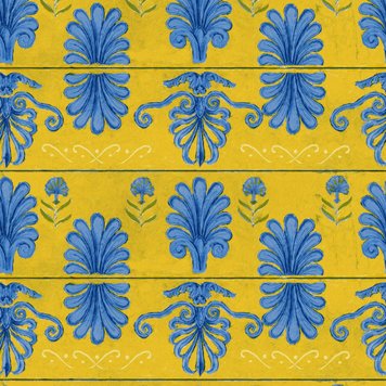 Mykonos Villa Motif is een weelderig uitziend behang met een delicaat patroon van franjes en sieralgen. Het zal zeker het gevoel geven van een prachtige zomervakantie in een majestueuze villa.