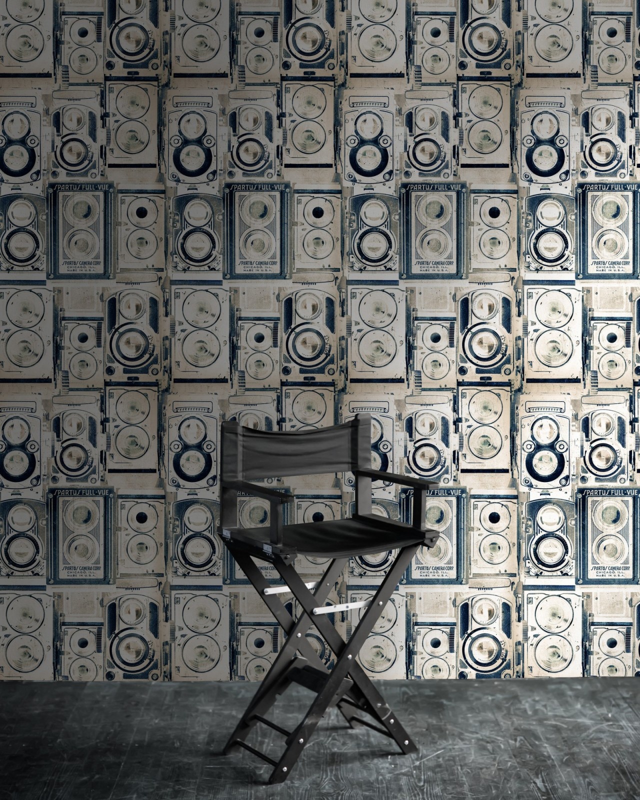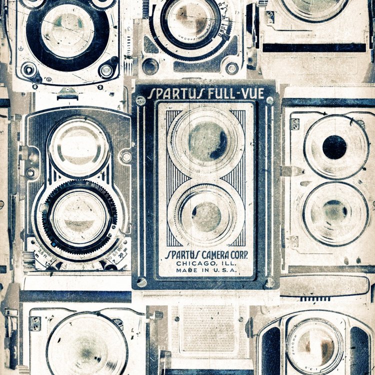 Een uitstekend ontwerp met retro vibes, met vintage cameralansen in donkere kleuren.