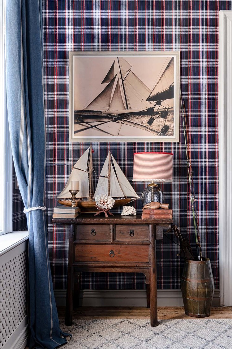 Seaport Plaid is niet weg te denken uit de extravagante jachtinterieurs. Het geeft een betoverend en innemend gevoel van weelde en is een aanvulling op elk gedurfd interieur. Dit behang geeft een indringend gevoel van de Franse kust uit de jaren 1970.