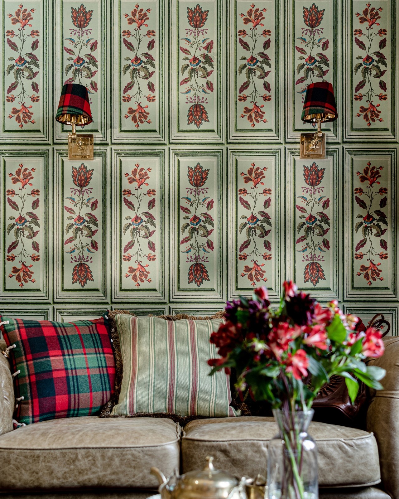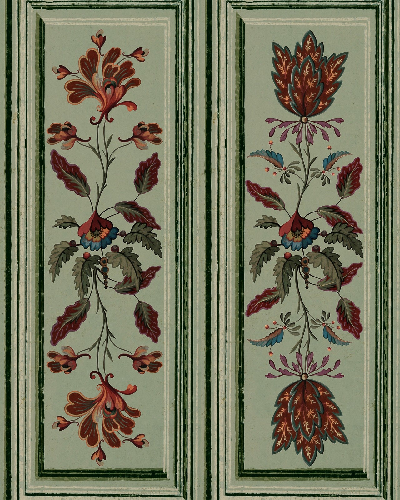 Tyrolean Panel is een behang dat geïnspireerd is op de traditionele Tiroolse panelen, die op meubels of op de muren van het huis geschilderd worden. Deze muurbekleding van Mind the Gap uit de Tyrol Apres-Ski collectie toont een folklore patroon, compleet met schilderachtige streken, gestileerde bloemen en delicate bladeren. Een vintage behang dat perfect is voor een tijdloos, sfeervol en warm interieur.