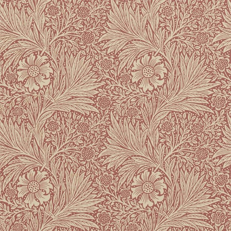 Marigold behang Morris & Co van William Morris is een prachtig behang met een patroon van bloemen (afrikaantjes) en bladeren. In een enkele kleur creëerde Morris prachtige patronen die goed functioneerden, zowel op behang als op stof stof. Een elegant veelzijdig behang met een blijvende aantrekkingskracht.