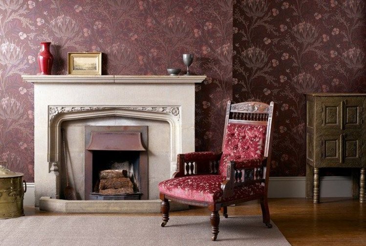 Morris & Co behang Artichoke is oorspronkelijk ontworpen door John Henry Dearle in 1898. Een veelkleurig Engels behang met een prachtig artisjok motief. Hier in een prachtige monotone versie met daarop grote artisjokken.