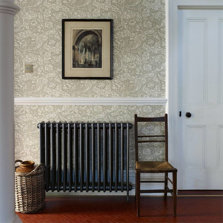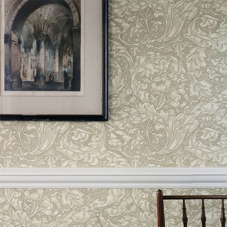 'Bachelors Button', een monochromatische afbeelding van korenbloemen (in de folklore bekend als Bachelor's Buttons zoals ze werden gedragen door verliefde jonge mannen), werd ontworpen door Morris in 1892. De Design Studio heeft het ontwerp nagebootst in vier neutrale kleuren en drie rijkere tonen, die aan elkaar vasthielden op het eenvoudige schema van Morris dat slechts drie kleuren omvat.