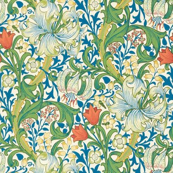 De sterke diagonale opstelling van JH Dearles Golden Lily (1899) geeft structuur aan de verstrengelde leliestelen en ranken. Een van Morris & Co.'s grootste erfenissen Golden Lily is verkrijgbaar in zes opvallende kleuren in de Archive Wallpaper-collectie.