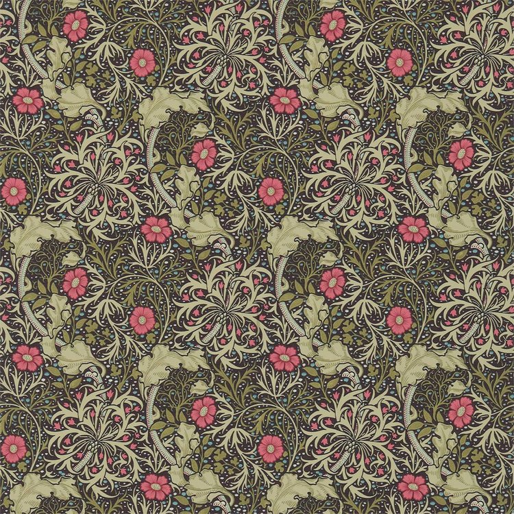 Een vloeiend behangpatroon, dat de onderwaterbeweging van planten vastlegt en is geïnspireerd op de kronkelige rondingen van de art nouveau. Deze authentieke reproductie uit een document uit het Morris & Co.-archief, ontworpen door JH Dearle in 1901, is gedrukt in juweelachtige kleuren en ook verkrijgbaar als stof.