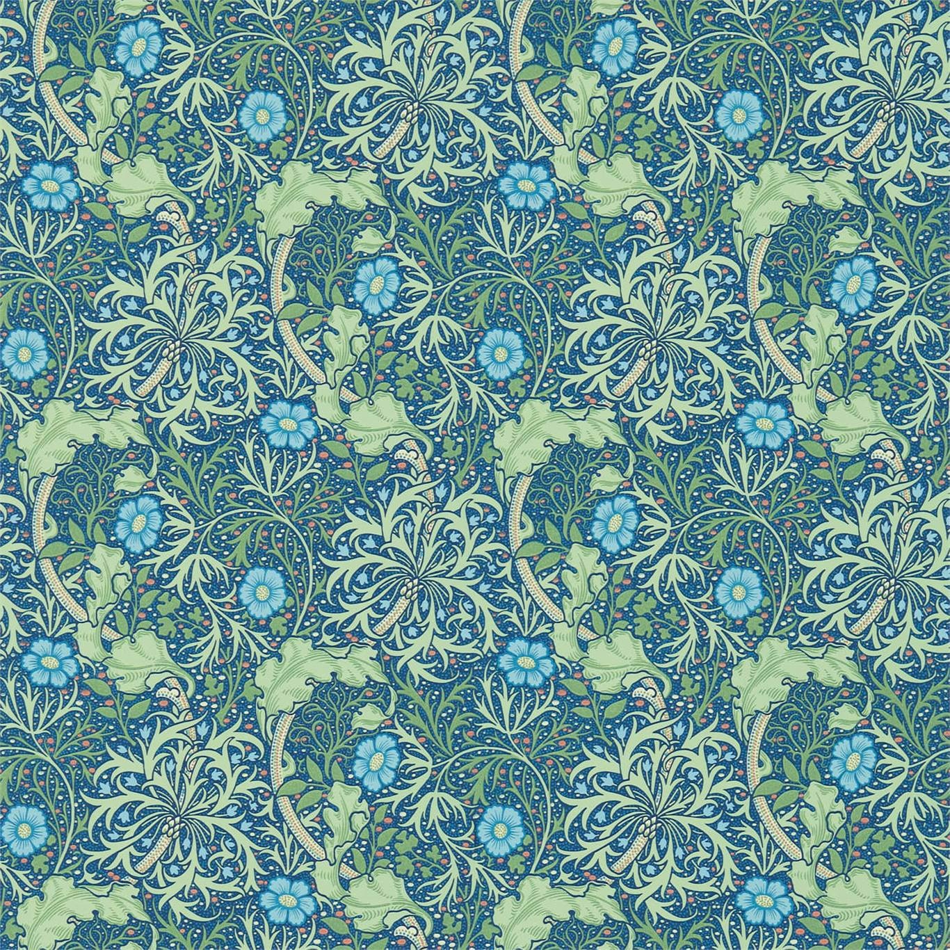 Een vloeiend behangpatroon, dat de onderwaterbeweging van planten vastlegt en is geïnspireerd op de kronkelige rondingen van de art nouveau. Deze authentieke reproductie uit een document uit het Morris & Co.-archief, ontworpen door JH Dearle in 1901, is gedrukt in juweelachtige kleuren en ook verkrijgbaar als stof.
