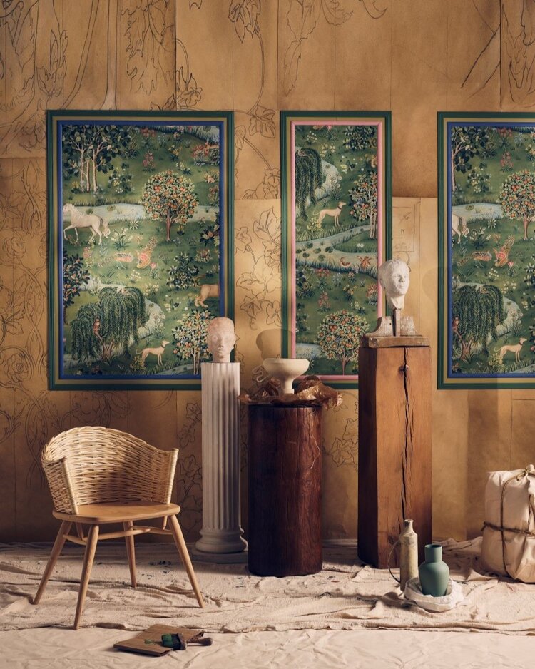 Dit dessin is gemaakt om de 160e verjaardag van Morris & Co te vieren. Charmante wilde dieren, gestileerde bomen en delicate bloemen zijn te zien in dit betoverende tafereel.