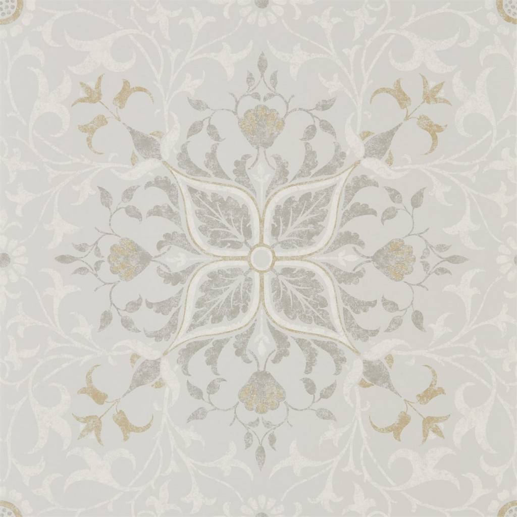 Morris & Co. heeft vijf plafondpapieren gemaakt, en dit is er een van. Oorspronkelijk ontworpen in 1895, toont dit behang kroonlijstwerk en vormt het een gedurfd, grafisch ontwerp in rastervormige formatie. Dit patroon is voor het eerst machinaal bedrukt en is verkrijgbaar in overwegend lichte kleuren met een opvallende zwarte en gouden kleur voor moderne huizen.