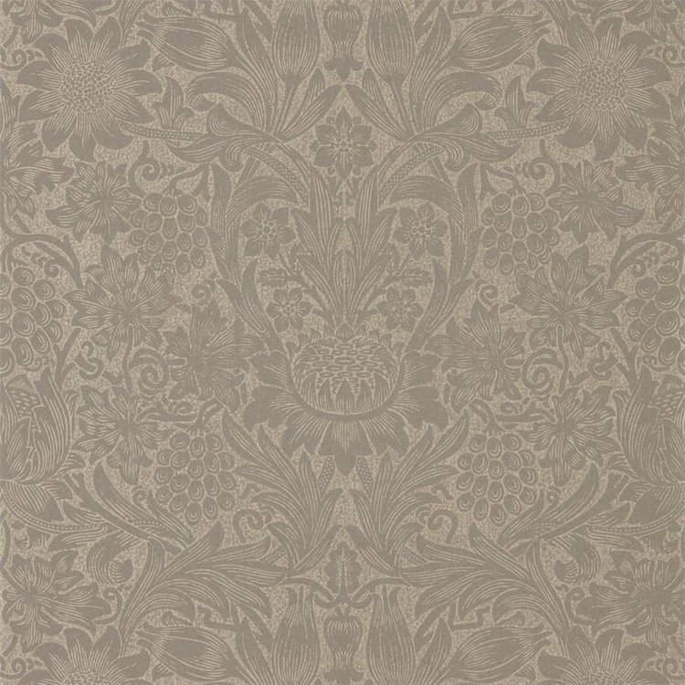 Het behang Morris Pure Sunflower heeft een prachtig gespiegeld motief van zonnebloemen.Afgeleid van het originele Morris Sunflower dessin, maar hier, in de PURE MORRIS Collectie, uitgevoerd in subtiele vergrijsde tinten en naturellen. En het patroon is vergroot ten opzichte van het origineel.