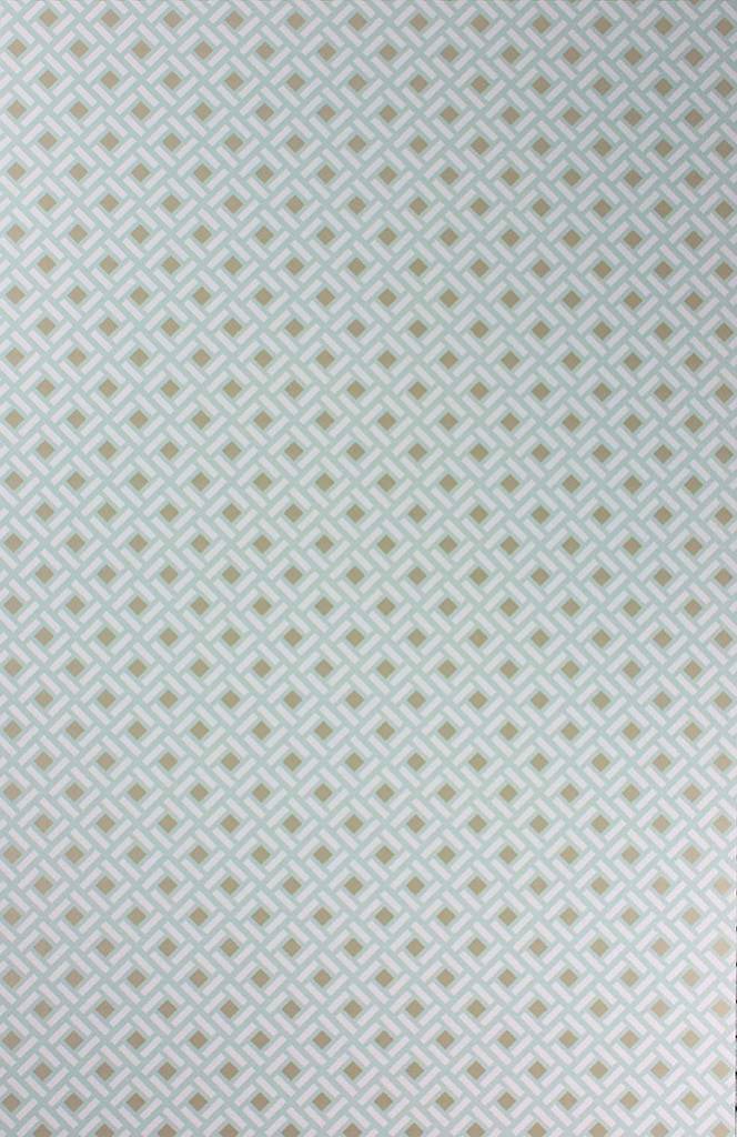 Een kleinschalig ruitvormig trellisontwerp met een gekleurd midden. Getoond in zwart en steen met gouden centra.