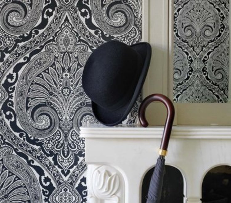 Dit weelderige behang is vernoemd naar de oude nomadische stam uit het noorden van China en heeft een grootschalig Paisley-damast in matte en metaalachtige kleuren.