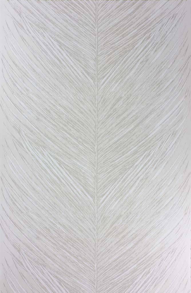 Een overgeschaald ontwerp met verenvarenblaadjes, waardoor een gewaagde streep ontstaat. Getoond in wit en zilver. Andere kleuren zijn beschikbaar. Vraag monster aan voor echte kleurovereenkomst.