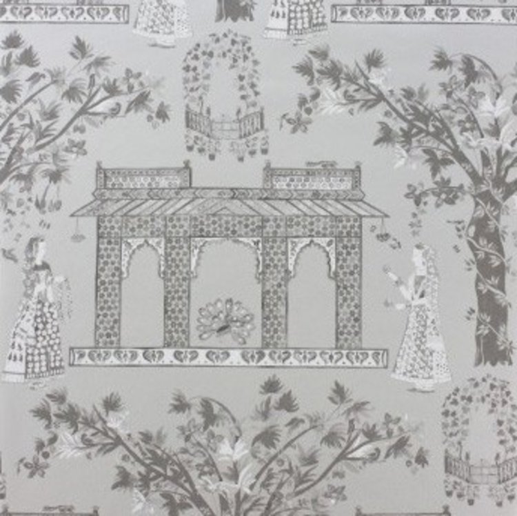 Een betoverende scène van elegante, in sari geklede dames in een met bloemen beladen tuin