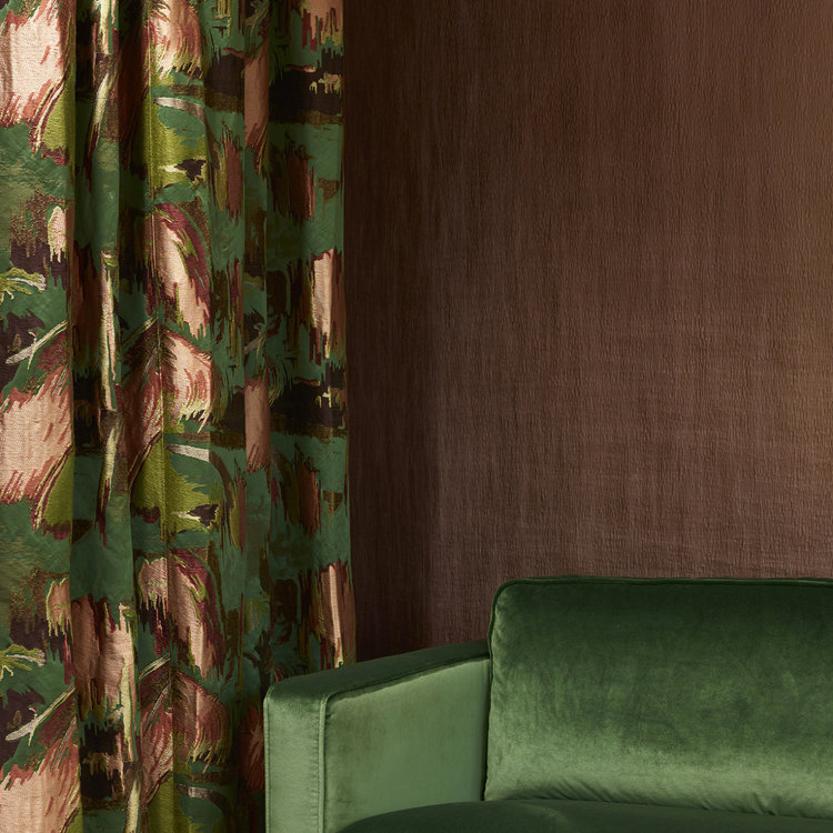 Gouge wandbekleding van Nobilis heeft een gestructureerd oppervlak dat lijkt op de bast van het waardevolle gutshout. Dit ontwerp maakt gebruik van warme tinten om een gastvrije sfeer in huis te creëren.