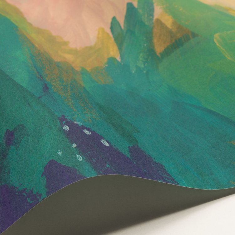 Met zijn betoverende heuvelachtige landschap, afwisselende heuvels en watervallen, nodigt dit panorama ons uit tot contemplatie. Afgewezen in een atmosfeer overdag, waar de pasteltinten van de dageraad de boomtoppen strelen, en in een mysterieuze nachtelijke versie, doet Les Cascades zich gelden als een groot schilderachtig fresco, waar de verbeelding wordt uitgenodigd om zichzelf te bevrijden. Een rol is opgebouwd uit 3 stroken van 70 cm x 330 cm, dus een compleet panorama van 210 cm x 330 cm.