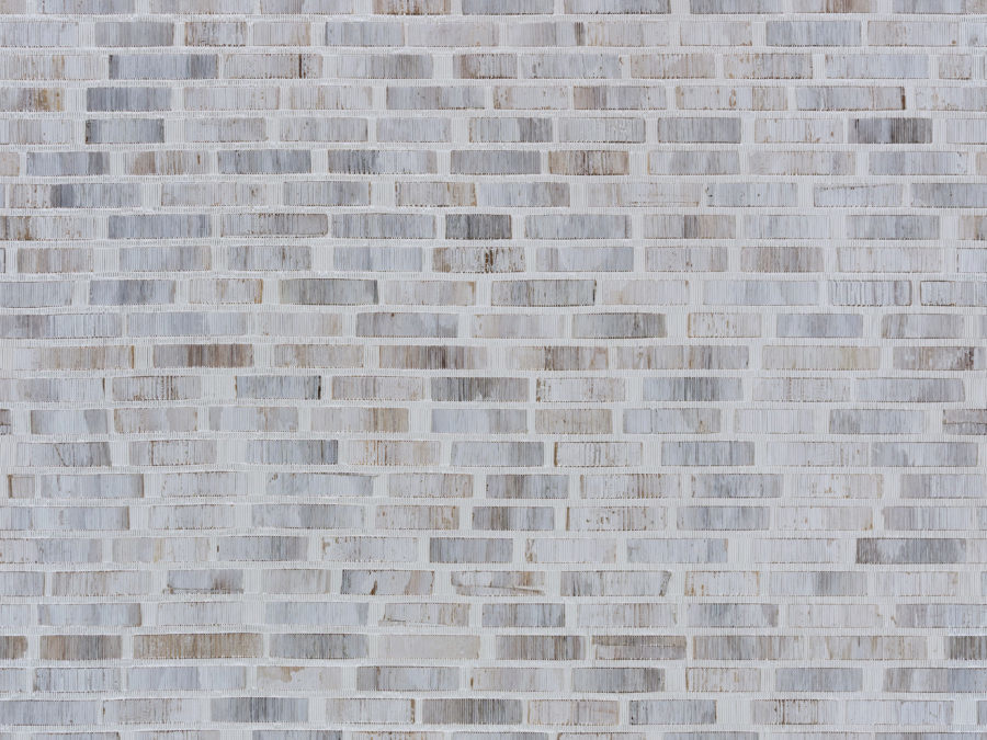 Gemetalliseerd geweven bBakbak Strips behang Regelmatige en fijne stroken bakbak worden aan elkaar genaaid met metalen draden van glinsterend koper of zilver om een sfeer van totale elegantie te creëren.