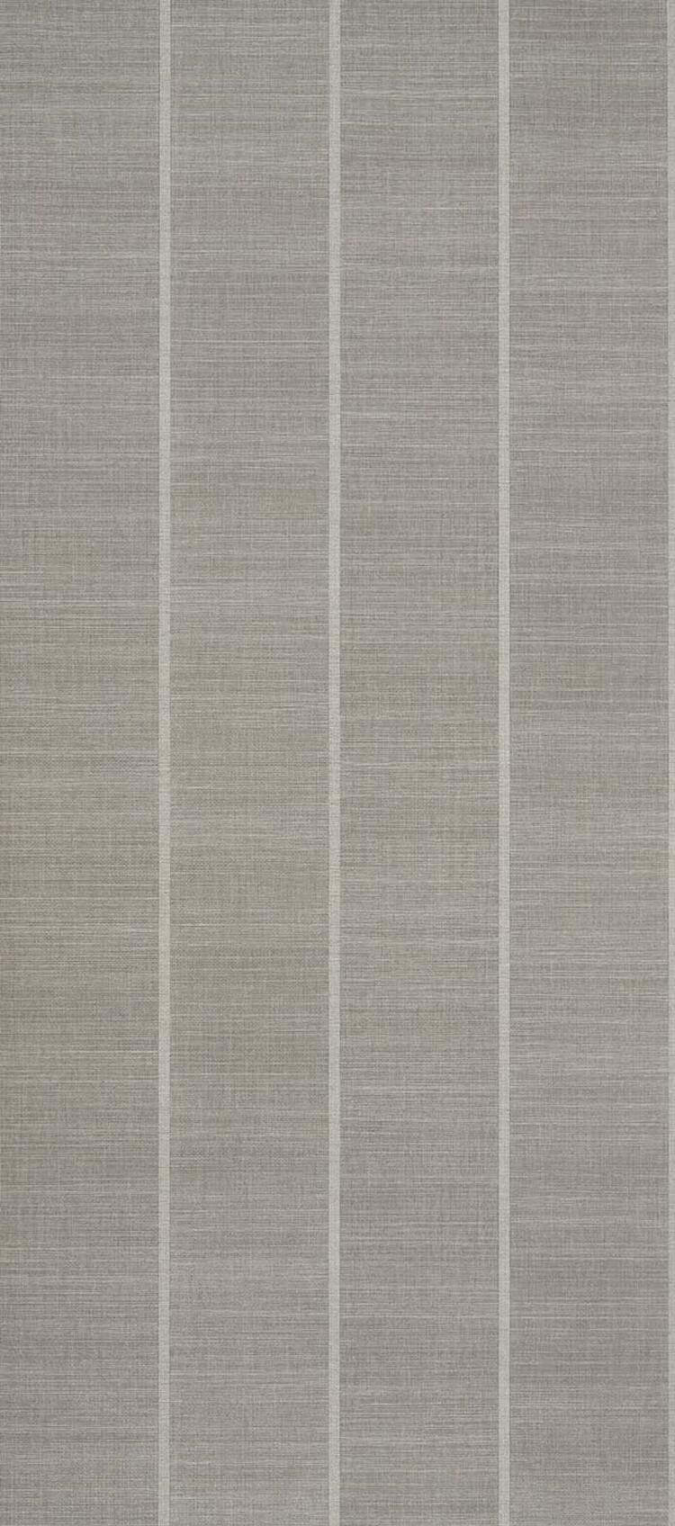 Shoji Vinyl behang. Brede banden van horizontale strié die de textuur van grasweefsel imiteren, worden afgewisseld met smalle verticale strepen. Bedrukt en gebosseleerd met een canvastextuur om de stofachtige kwaliteit van het ontwerp te verbeteren.