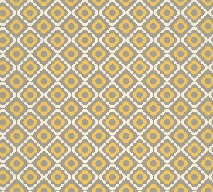 Een compacte geometrische vorm, die - soms heel subtiel - te zien is in historische architectuur en interieurontwerp over de hele wereld. In tegenstelling tot het bronmateriaal, ingelegde encaustic vloertegels, is dit ontwerp gedrukt volgens traditionele methoden, met overgelegde inkten om de gladde matte textuur van keramische tegels na te bootsen.