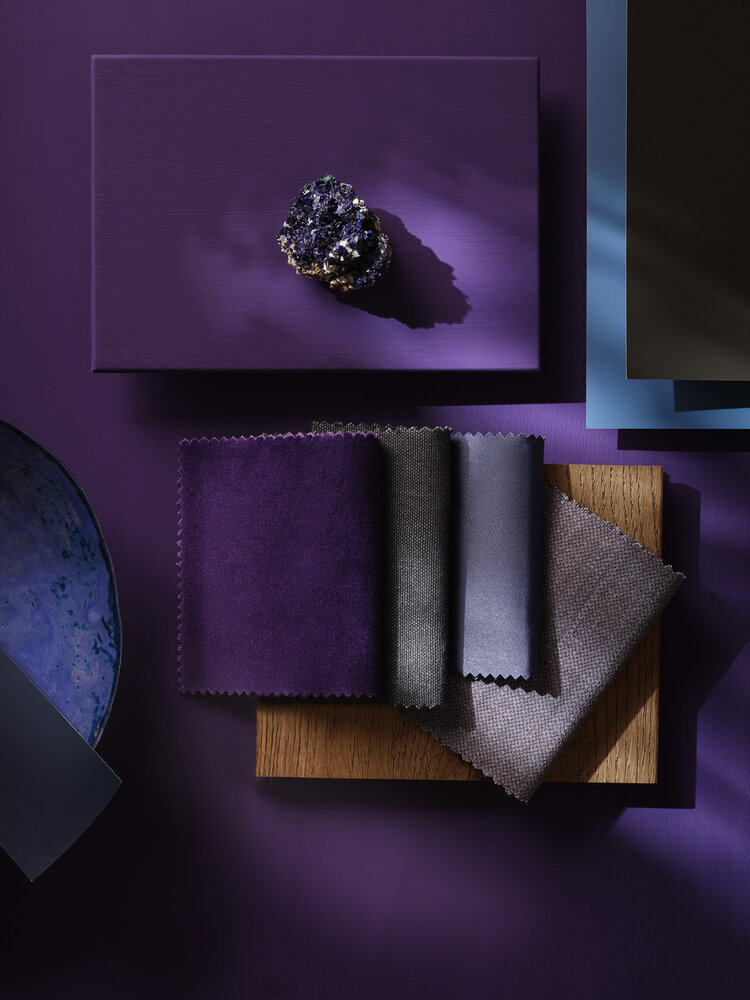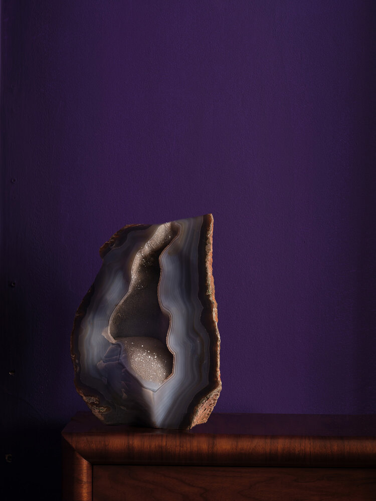 Eeuwenlang werd azuriet gebruikt als blauw pigment voor verf en kleurstoffen. Het komt voor in dezelfde geologische omgevingen als zijn zustermineraal malachiet, waarbij de intense kleur wordt veroorzaakt door de aanwezigheid van koper. Deze weelderige verftint is geïnspireerd op de diepe facetten van een uitzonderlijk hoogwaardig specimen, zo rijk van kleur dat het bijna paars lijkt.
