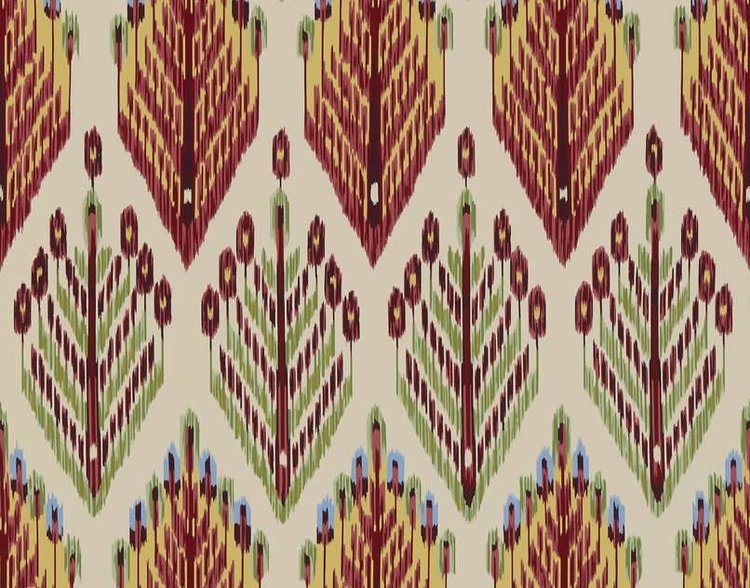 Dit behang, met een gestileerd bloemenpatroon, maakt subtiel gebruik van ikat-printmethoden en komt overeen met de L4553-print. Dit motief roept de eerste afdrukken van het huis op in 1897, toen Comé en Delaforge, de voormalige eigenaren van deze mooie fabriek, besloten hun aanbod te diversifiëren met behulp van de traditionele blokdruktechniek of kettingdruk. Zeefdruk met de hand. Reproductie van een archief van het huis.