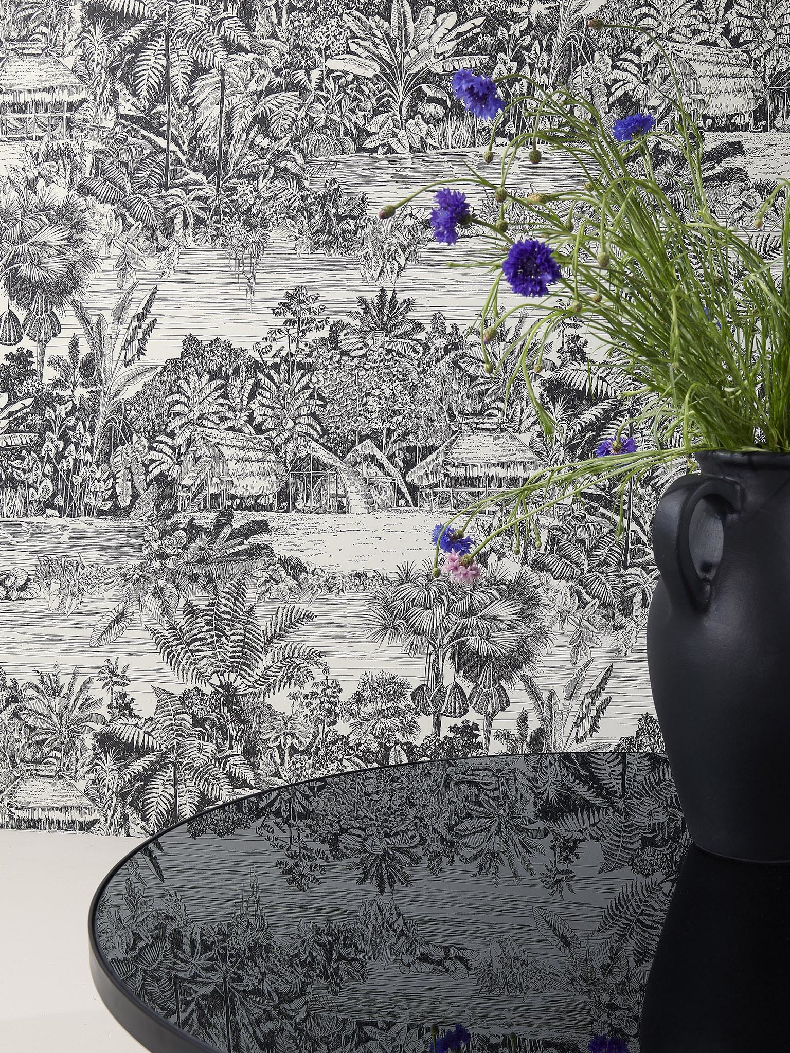 Belize is een behang dat geïnspireerd is op het gelijknamige Belize. Deze muurbekleding van Pierre Frey uit de Les Dessins 6 collectie toont het tropische landschap, vol palmen, bomen, bloemen en authentieke hutten. Een exotisch behang dat perfect is voor een sprekend, trendy en rustiek interieur.