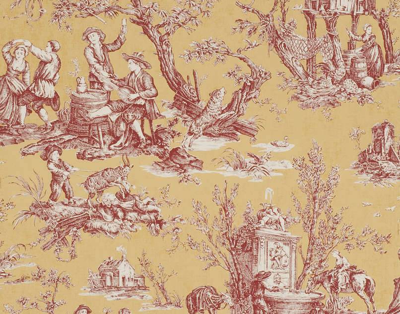 Ontwerp door Jean Batiste Huet. "L'abreuvoir" (drinktrog) toile de jouy gedrukt in 1792 in de fabriek van Oberkampf de Jouy in Josas.
