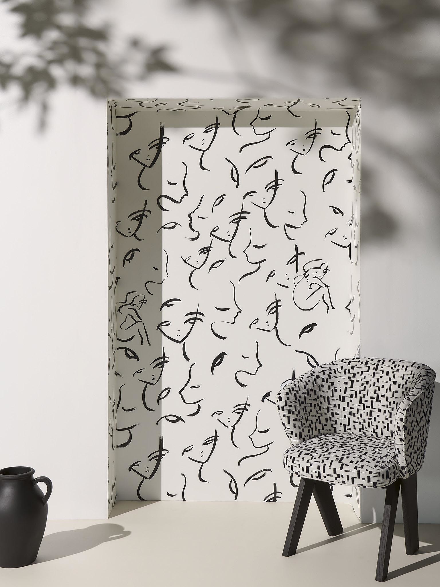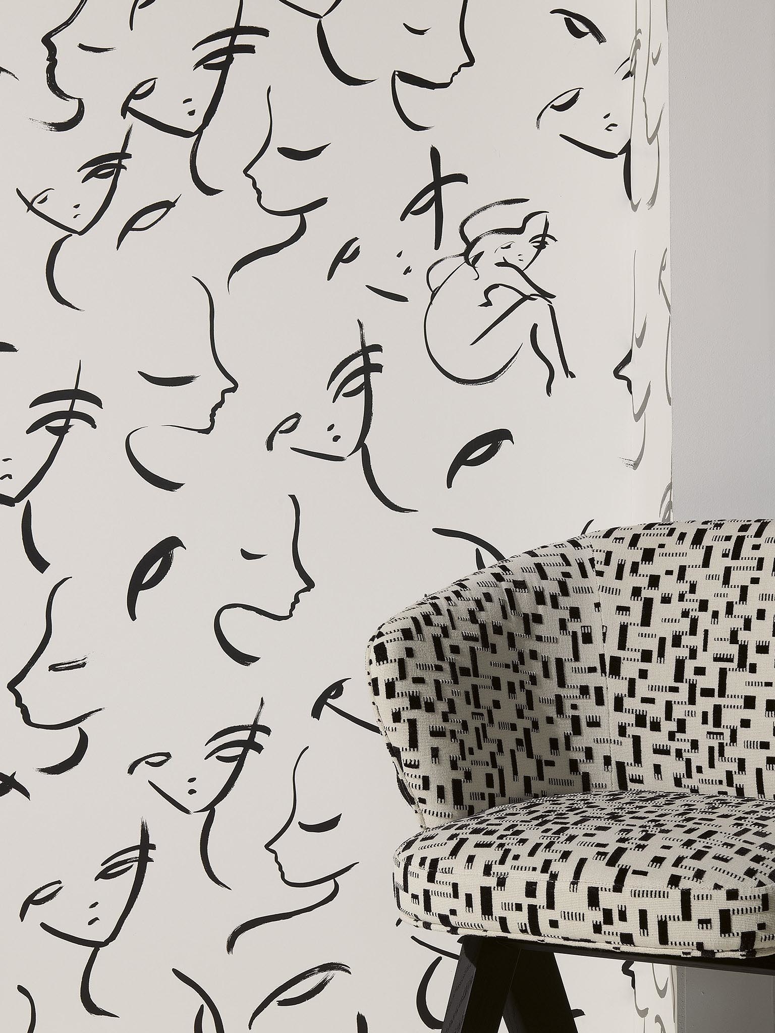 Gabrielle is een behang dat geïnspireerd is op de het werk van kunstenares Gabrielle Rul. Deze muurbekleding van Pierre Frey uit de Les Dessins 6 collectie heeft een patroon vol silhouetten van vrouwelijke gezichten en lichamen. Een grafisch behang dat perfect is voor een modern, trendy en artistiek interieur.