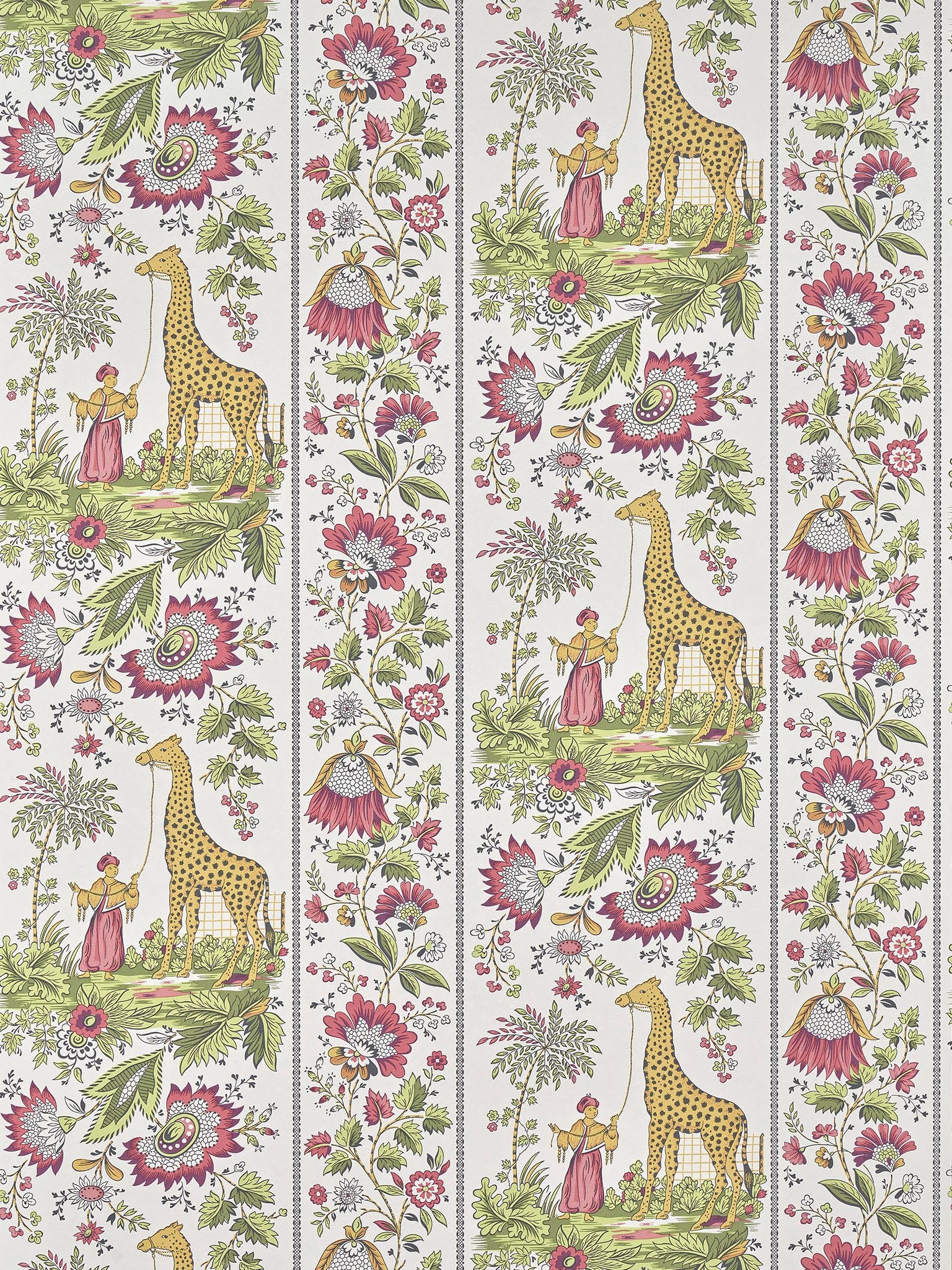 Ismaelia is een behang dat geïnspireerd is op de 19e eeuwse paneelschilderingen. Deze muurbekleding van Pierre Frey uit de Les Dessins 6 collectie toont stroken met Afrikaanse planten, bloemen en giraffes. Een exotisch behang dat perfect is voor een klassiek, sprekend en tijdloos interieur.