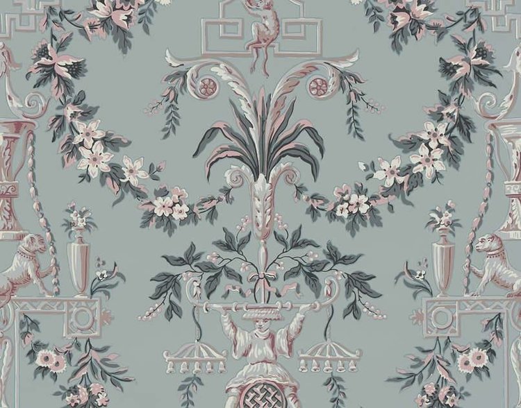 LES LIONS reproduceert een passend behang gedrukt met de blokdruktechniek door de fabrikant Royale Réveillon in Parijs rond 1786. We bewaren het originele behang in ons archief. Dit motief is ook beschikbaar op gedrukte percale onder de referentie L3636 Zeefdruk met de hand.