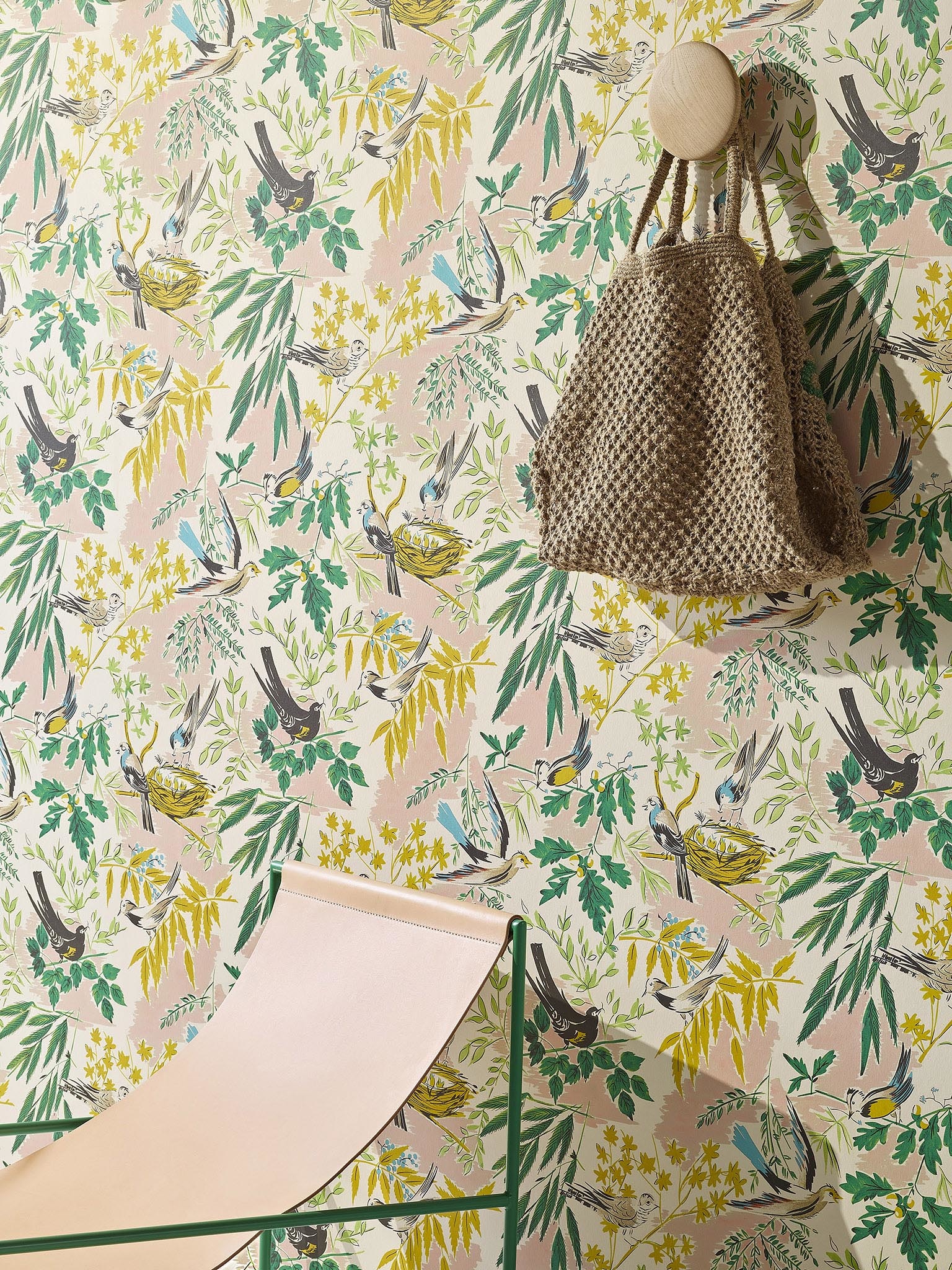Het behang van Nids Jolis is gebaseerd op een gouache- en waterverftekening uit 1951 die in het archief van Pierre Frey wordt bewaard. Het is poëtisch en rustiek, met lente- en romantische tinten. Grote bedrukking op een matte non-woven drager.