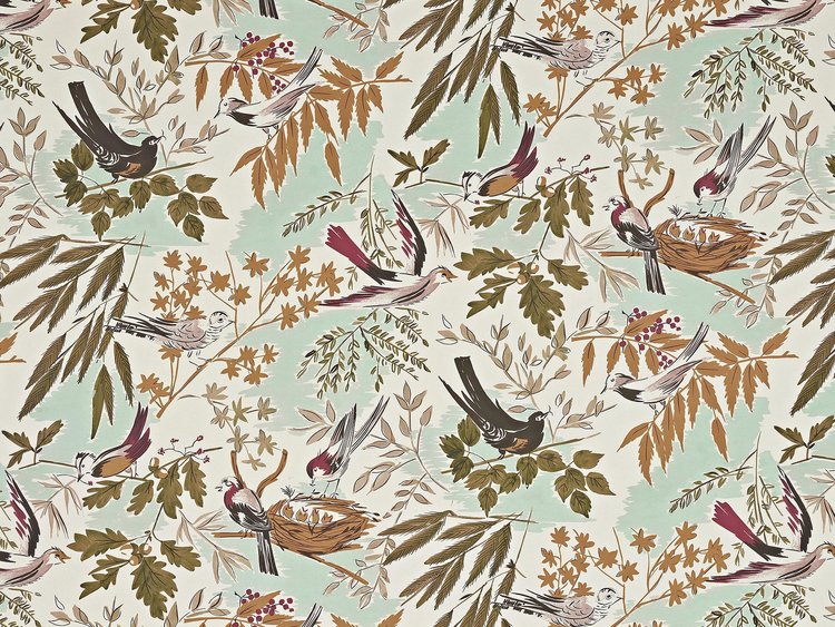 Het behang van Nids Jolis is gebaseerd op een gouache- en waterverftekening uit 1951 die in het archief van Pierre Frey wordt bewaard. Het is poëtisch en rustiek, met lente- en romantische tinten. Grote bedrukking op een matte non-woven drager.