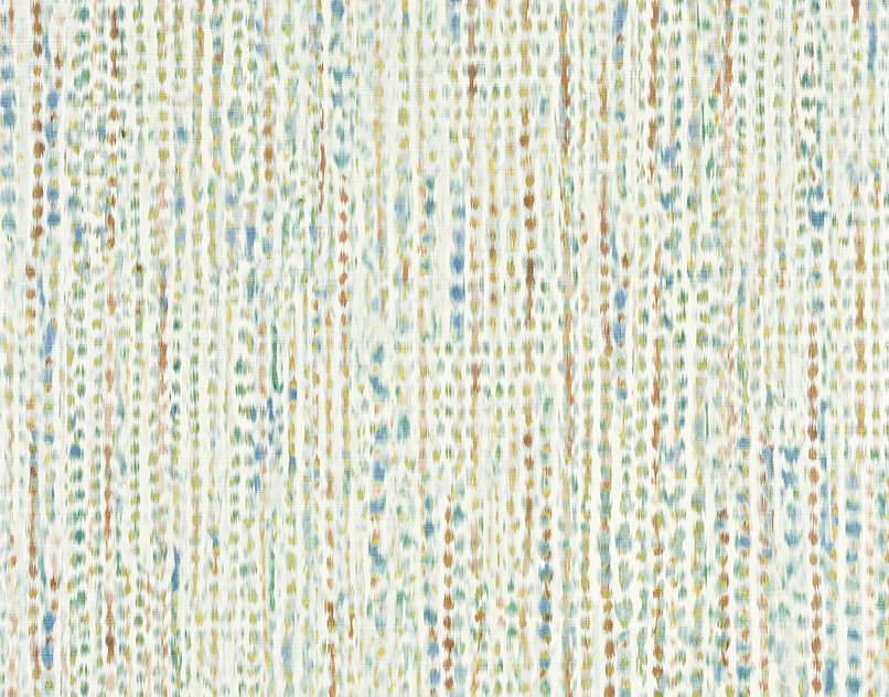 Deze delicate accenten van waterverf gedrukt op katoen doen denken aan ondefinieerbare verafgelegen plaatsen en gemengde inspiraties: ikat, dier, abstractie. Rotary gedrukt op reliëf en parelmoer vinyl, met de uitstraling van handgeweven zijde. Ook verkrijgbaar als stof onder referentie F3338.