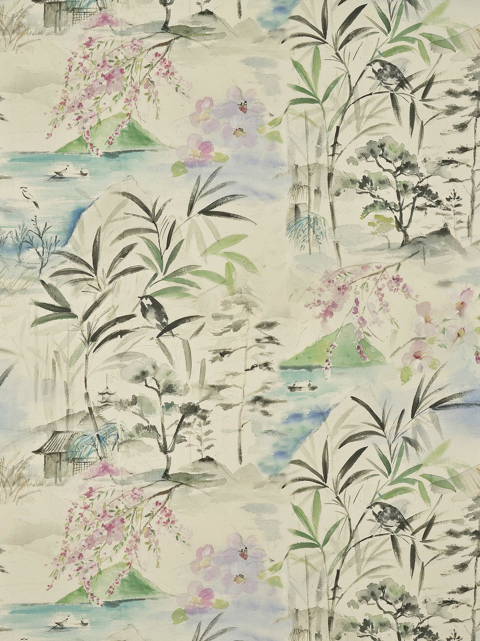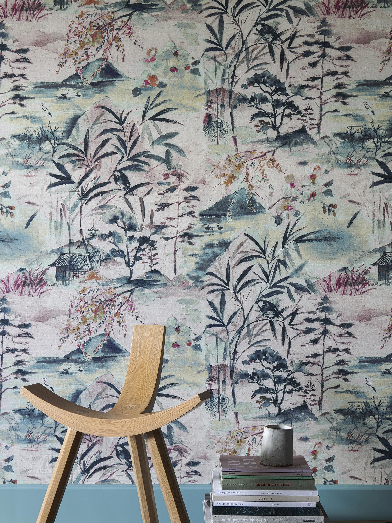 Oboshi is een behang dat geïnspireerd is op het gelijknamige Oboshi Park in Japan. Deze muurbekleding van Pierre Frey uit de Les Dessins 6 collectie toont een prachtig landschap, vol bergen, bloemen en authentieke bamboe. Een oosters behang dat perfect is voor een rustig, tijdloos en sfeervol interieur.