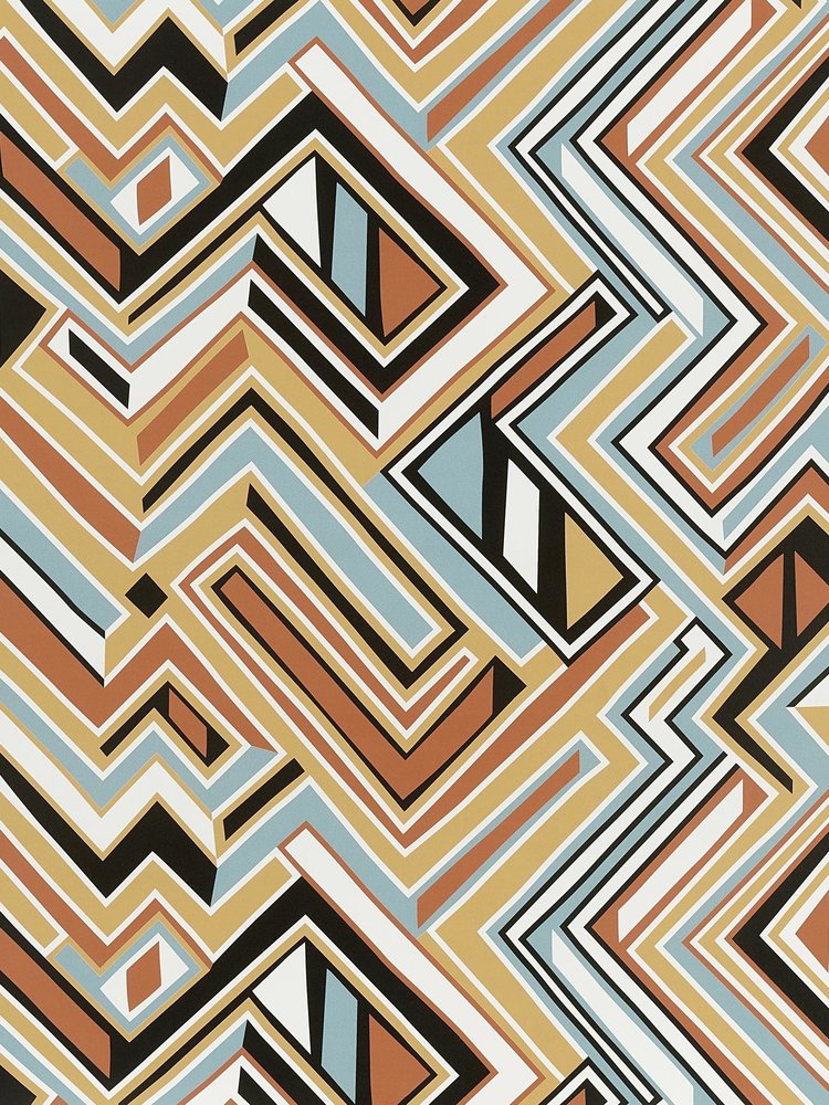 Oka behang heeft een grafisch patroon dat doet denken aan een rivier en zijn stromen die kronkelen en ritme geven aan de muur. Gedrukt in brede breedte op een non-woven satijnen rug.