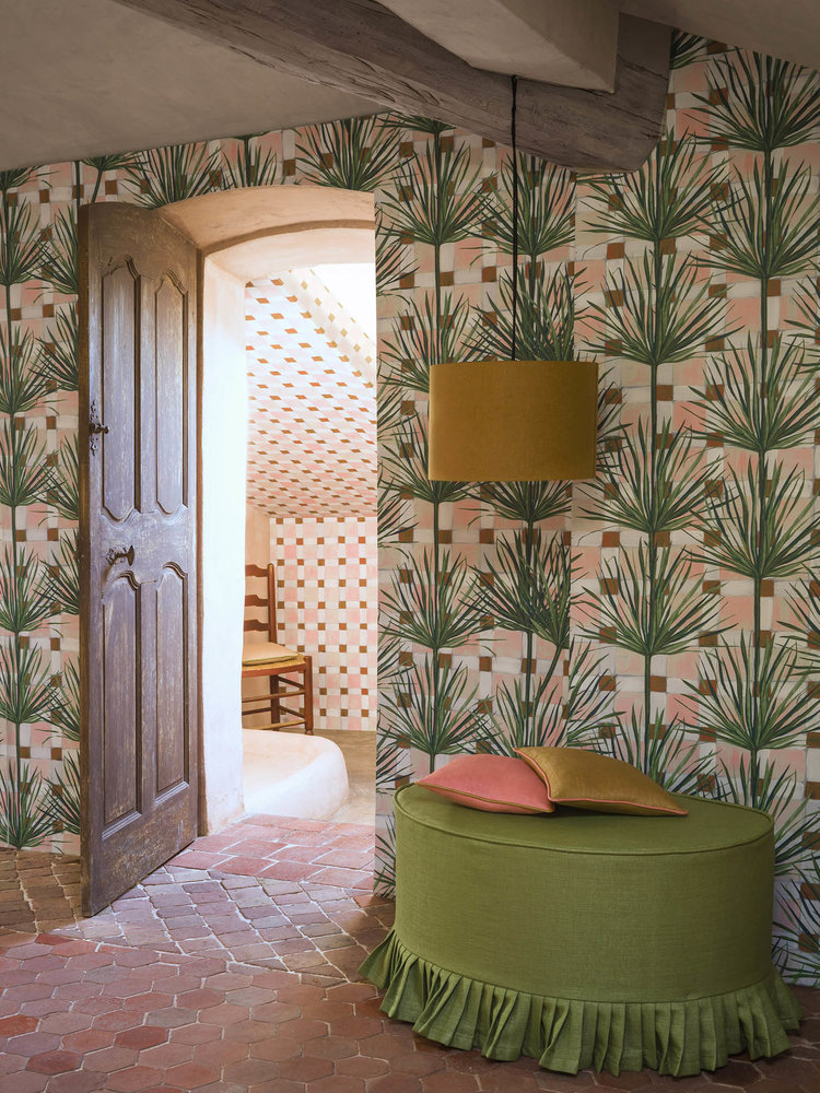 Een heerlijke verandering van omgeving met deze zonnige muur gemaakt van gekleurde keramische tegels en succulenten handgeschilderd met gouache.