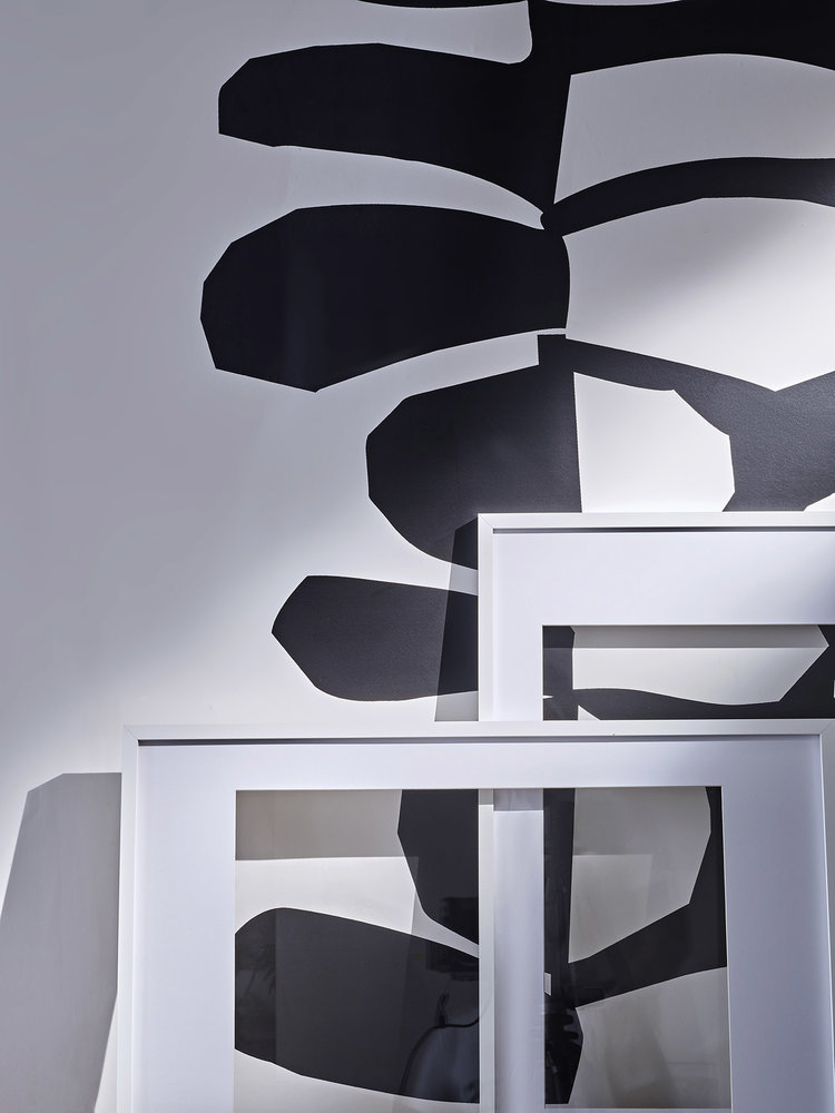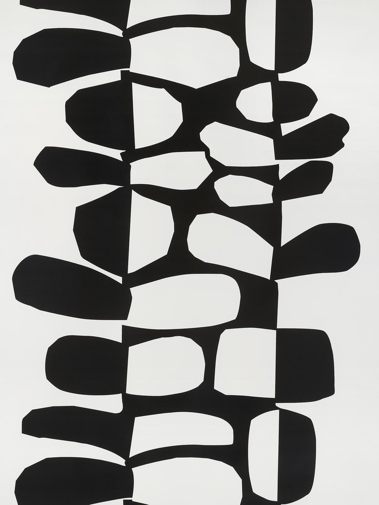 Dit moedige patroon wordt geleverd met een klassieke Bauhaus-benadering gedrukt op een grote breedte gecoat non-woven. Gemaakt van een rechthoek van zwart papier, 13 keer gesneden en getransformeerd in een nieuwe en dynamische vorm, introduceert dit ontwerp een krachtige balans tussen positieve en negatieve ruimte en vorm.