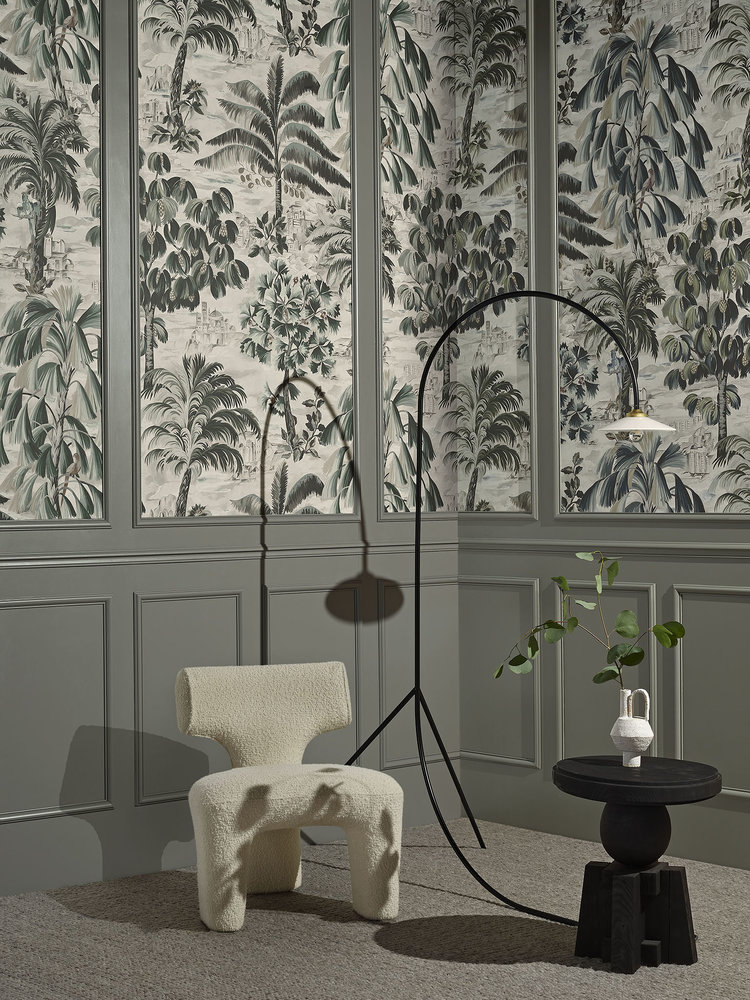 Tamanrasset behangontwerp neemt je mee naar een ver land tussen woestijn en weelderige oase. Grootformaat bedrukking op een matte non-woven drager.