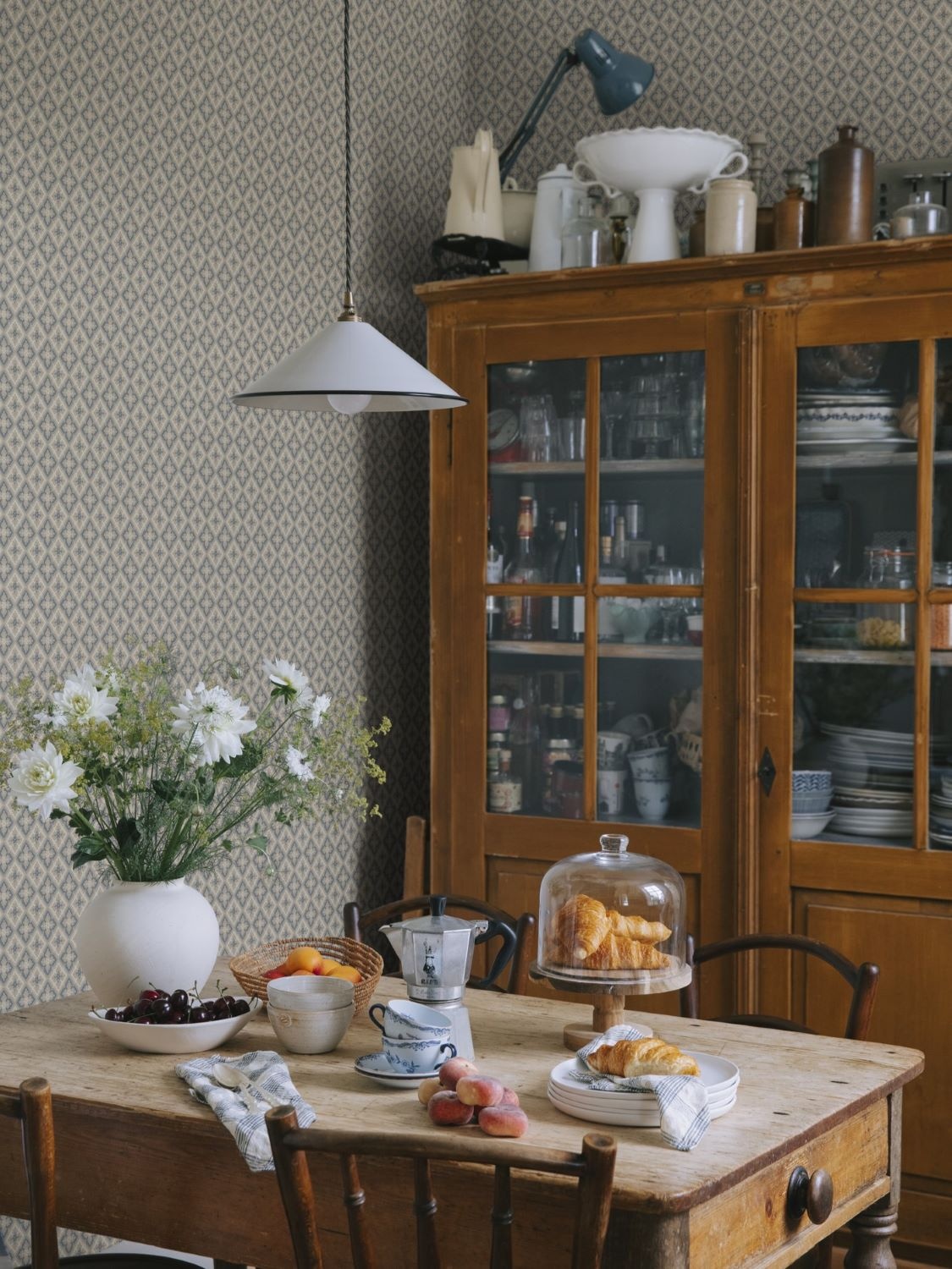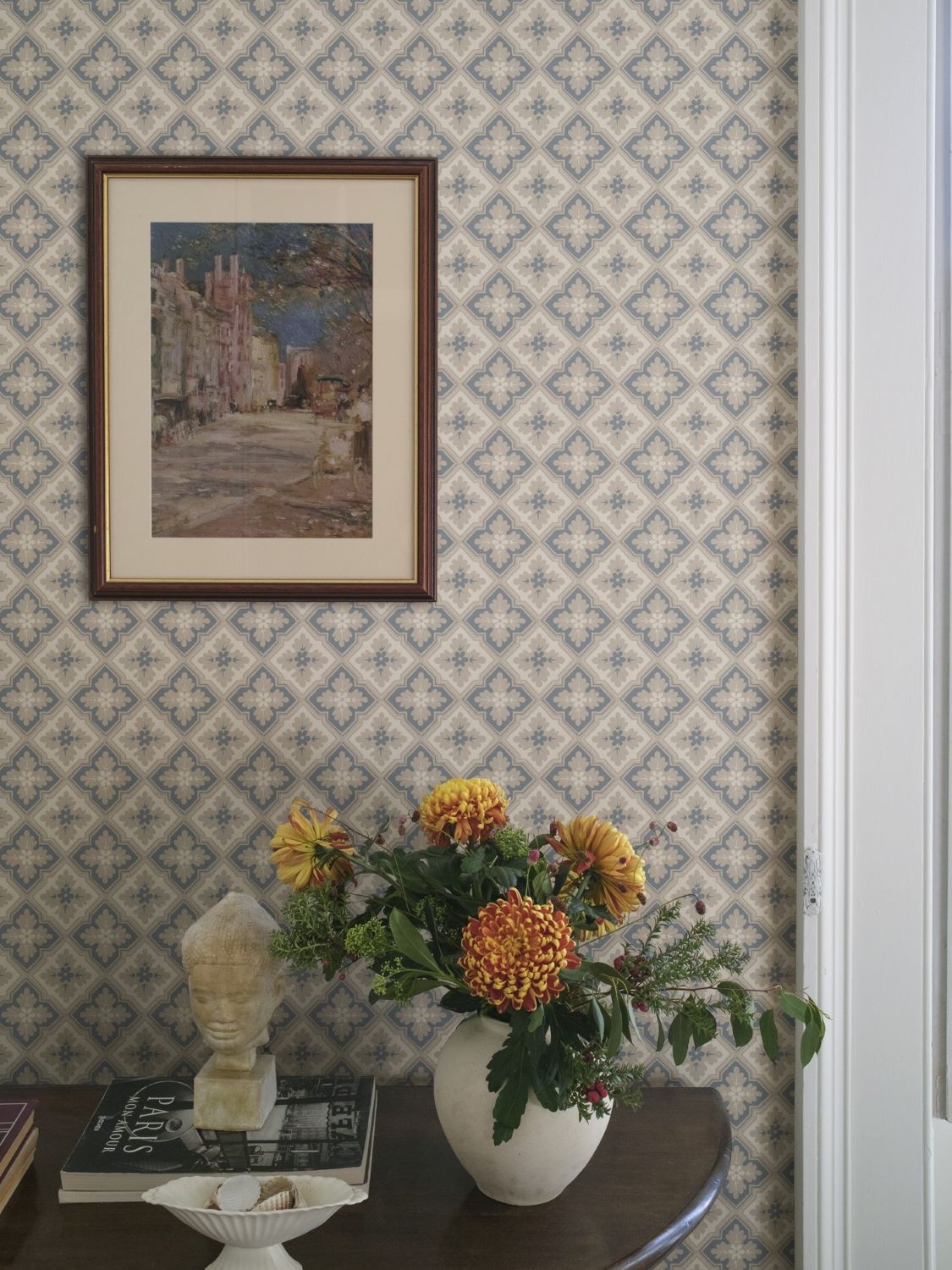 De collectie Ett Hem, Öland neemt je mee naar een zomers eiland in Zweden, waar patronen vloeiend in elkaar overgaan en een warme, gastvrije sfeer oproepen. De passie voor de ambacht van behang is op deze reis tot volle bloei gekomen, geïnspireerd door het vruchtbare eiland Öland, zijn schilderachtige dorpsstraten en eindeloze uitzichten.