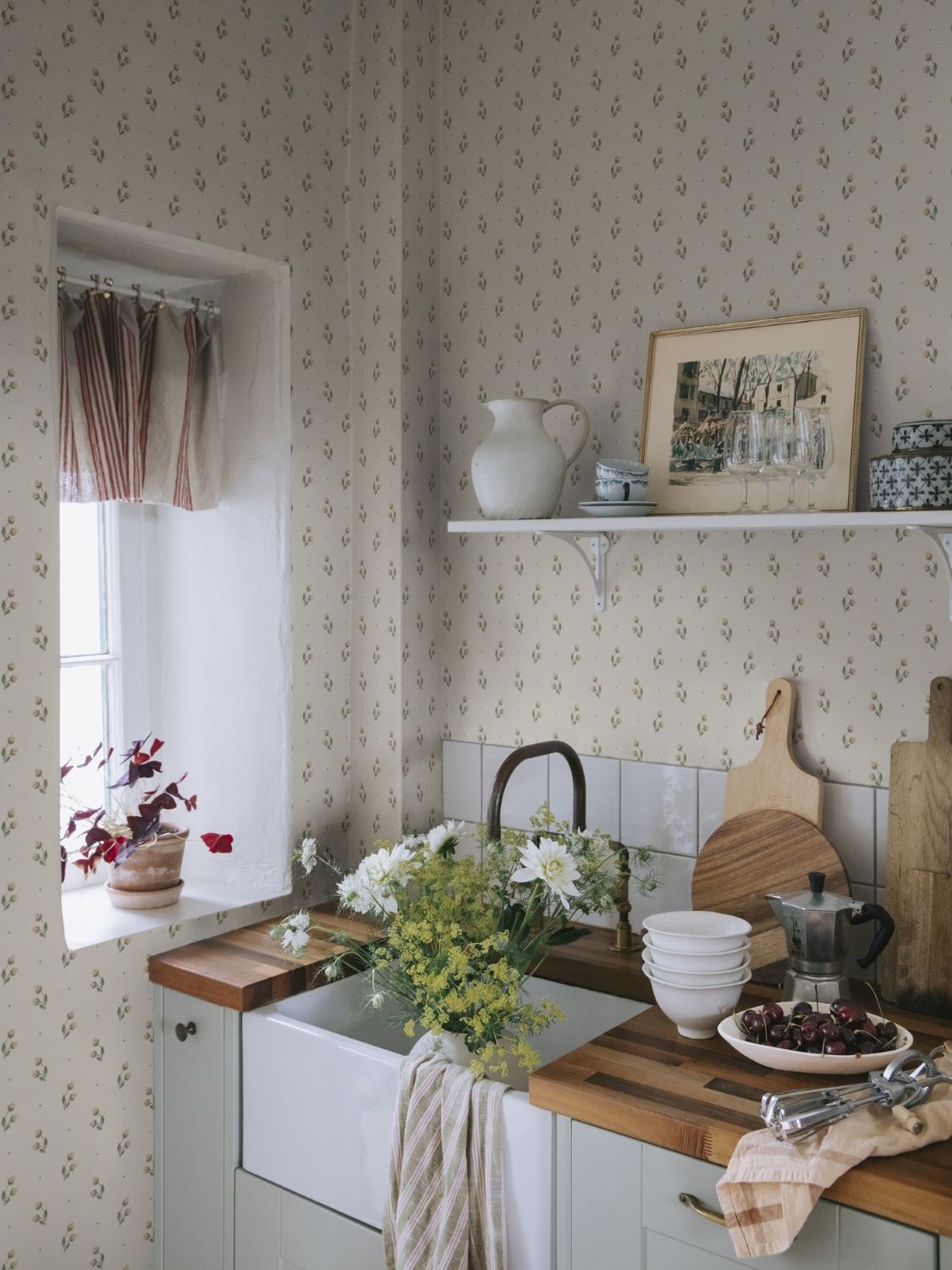 De collectie Ett Hem, Öland neemt je mee naar een zomers eiland in Zweden, waar patronen vloeiend in elkaar overgaan en een warme, gastvrije sfeer oproepen. De passie voor de ambacht van behang is op deze reis tot volle bloei gekomen, geïnspireerd door het vruchtbare eiland Öland, zijn schilderachtige dorpsstraten en eindeloze uitzichten.